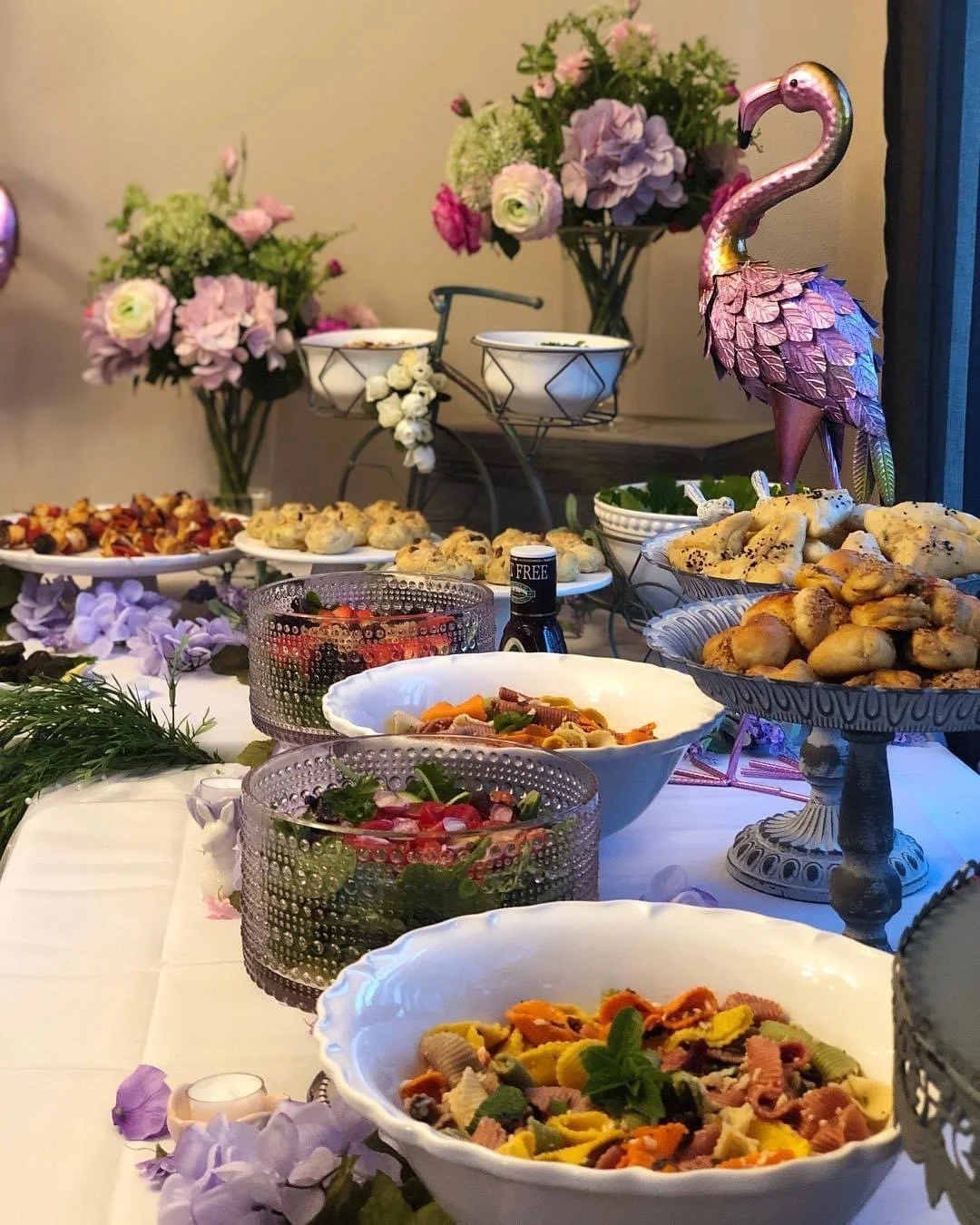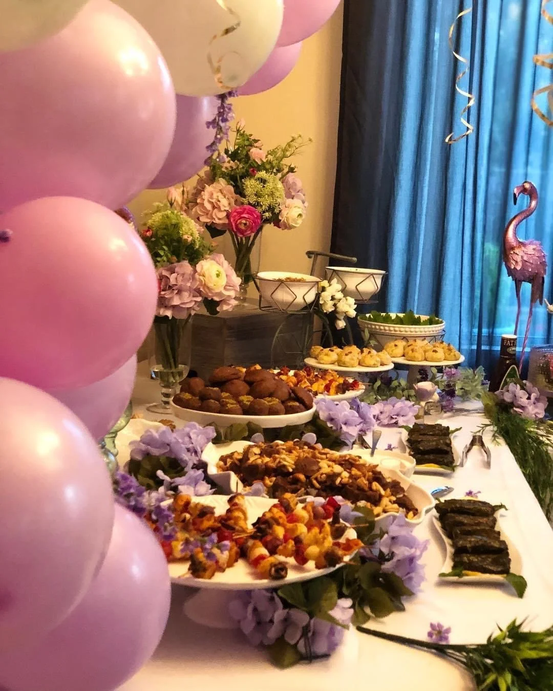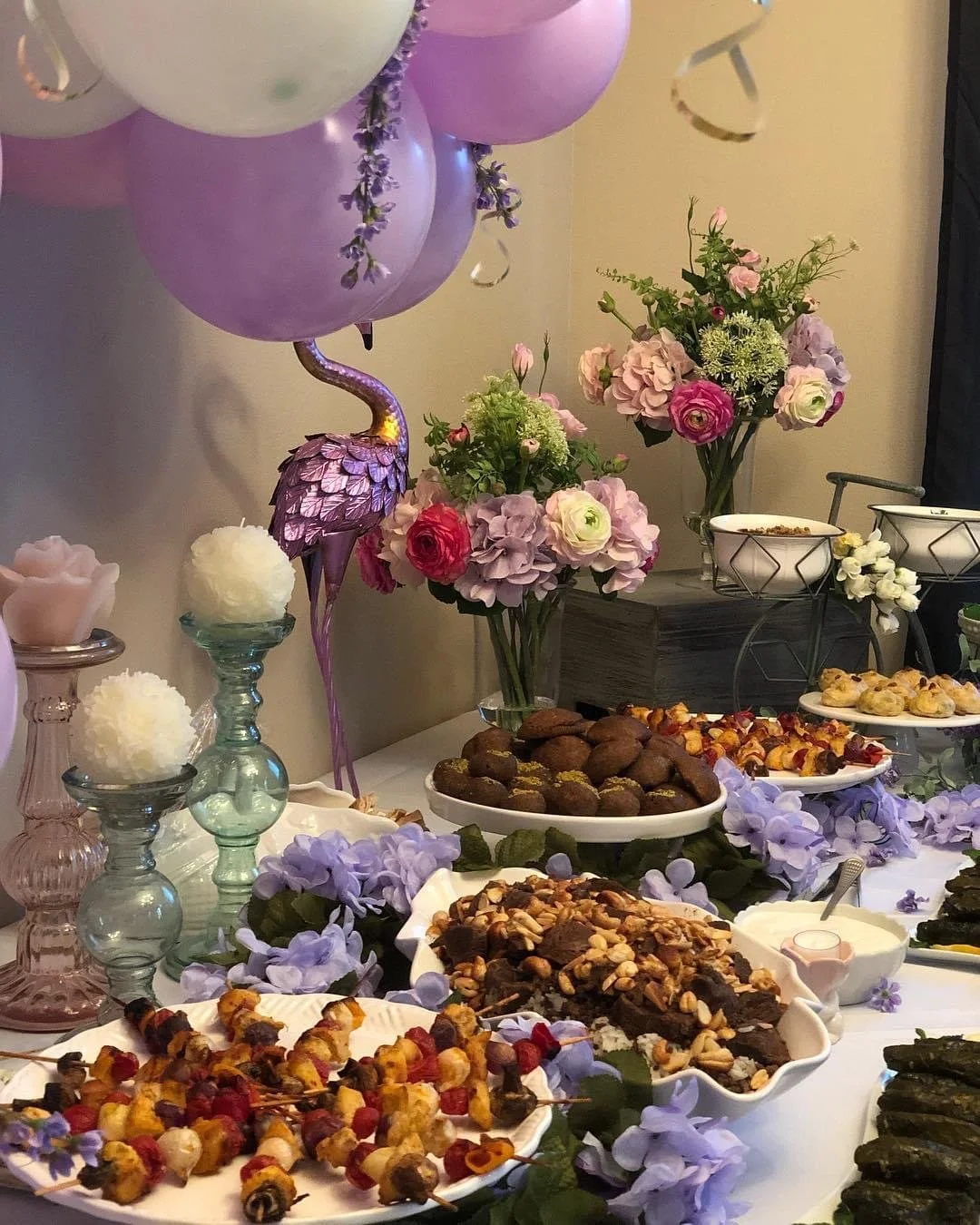 THIS ARABIAN NIGHT PARTY TRANSPORTED GUESTS TO A WORLD OF MYSTERY, MAGIC, AND ENCHANTMENT. WE USED A COLOR SCHEME OF A RICH AND LUXURIOUS COLOR PALETTE OF JEWELS TOWNS SUCH AS GOLD, TEAL, AND DEEP PURPLE TO CREATE AN AUTHENTIC AND IMMERSIVE ARABIAN NIGHT PARTY. RICH TEXTILES WERE USED TO CREATE A SUMPTUOUS FEEL BY USING THEM IN CURTAINS AND CUSHIONS. RUGS WERE INCORPORATED TO ADD A TOUCH OF AUTHENTICITY AND RICHNESS TO THE FLOOR, ACCOMPANIED BY LOW-LYING DIVANS AND POUFS TO CREATE A COMFORTABLE AND STYLISH SEATING AREA.